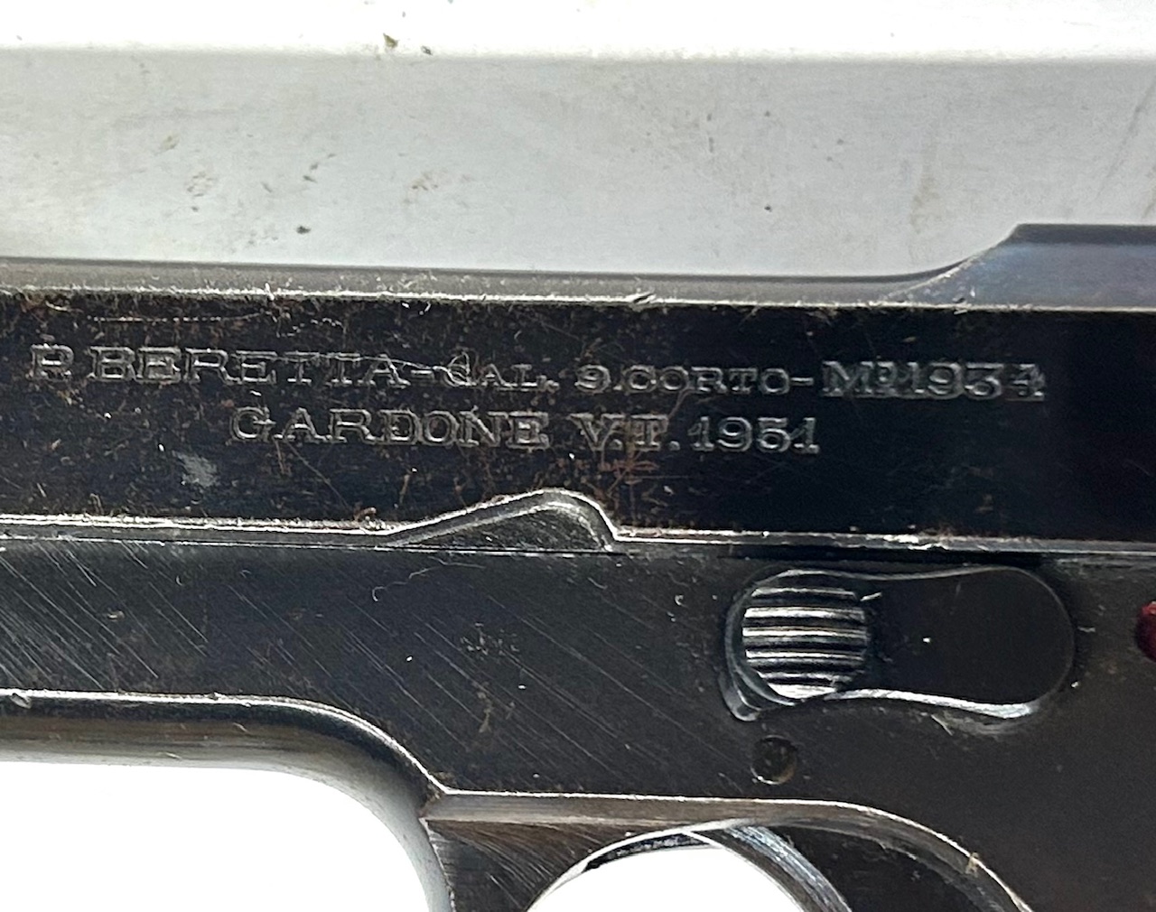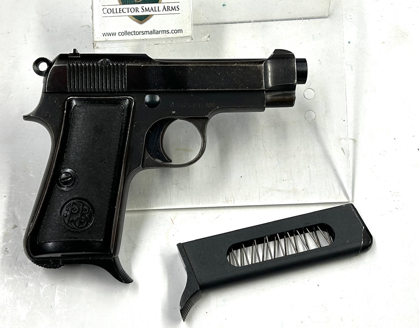 Ex ordinanza della nostra aeronautica, anno 1951, brunitura originale in eccellenti condizioni con i normali segni di utilizzo, canna bella, meccanica perfetta; Scritte secondo tipo, Punzone “Aquila A.M.”, canna monomatricola, completa di secondo caricatore.