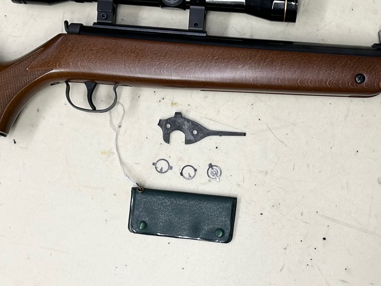 Carabina aria compressa cal. 4,5 in eccellenti condizioni, con ottica Nikko Stirling e completa del raro set mirini intercambiabili