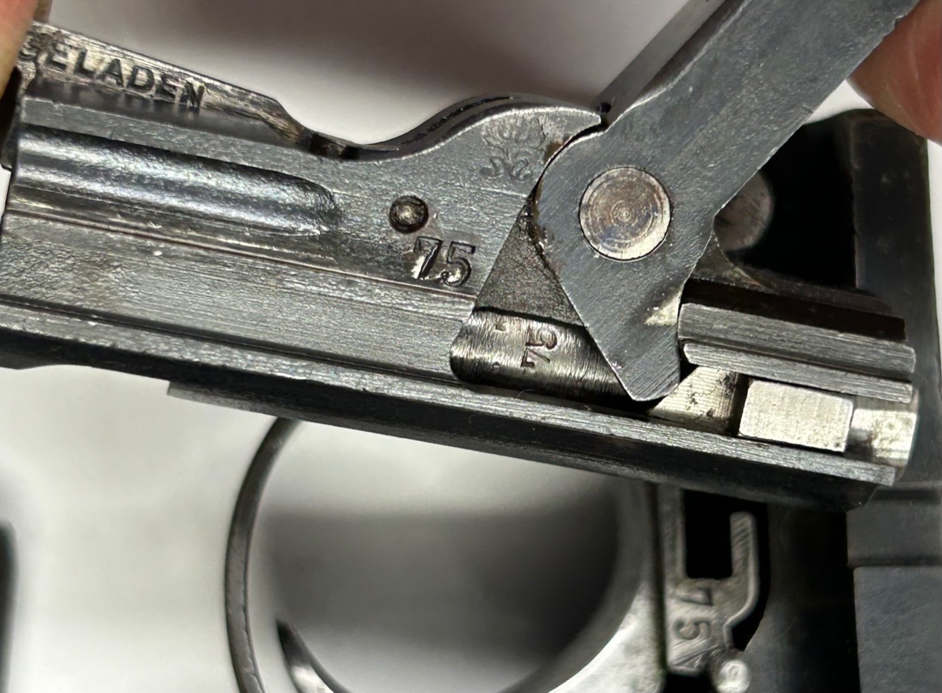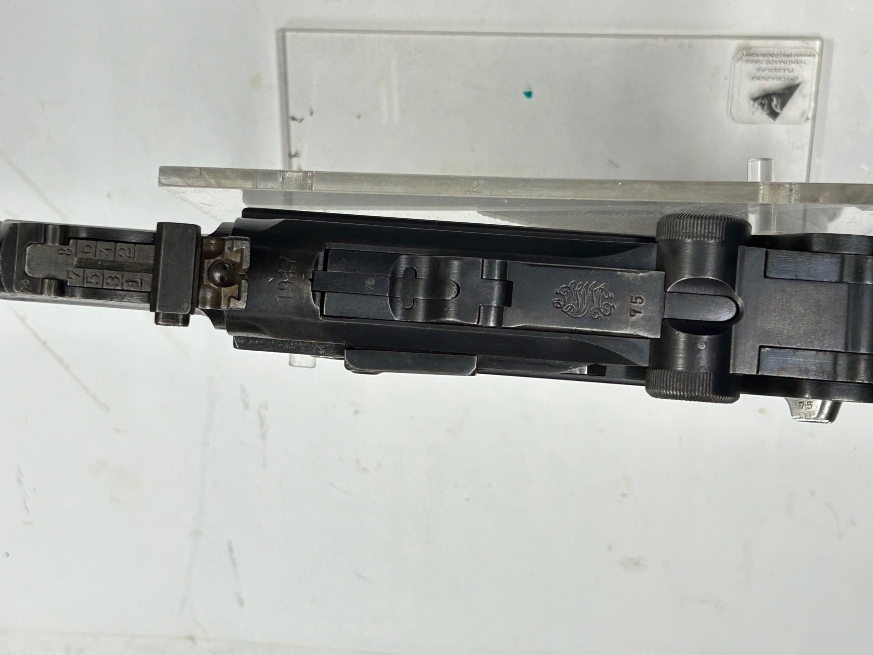 Fabbricazione Deutsche Waffen und Munitionsfabriken per i reparti di artiglieria dell’esercito imperiale tedesco nel 1917, Monomatricola compreso le guancette, Brunitura originale al 80% (rinnovata su parte della canna) in condizioni eccellenti, canna splendida con rigatura molto viva, meccanica perfetta, caricatore originale con fondello legno e corpo nichelato, mirino ancora con regolazione.