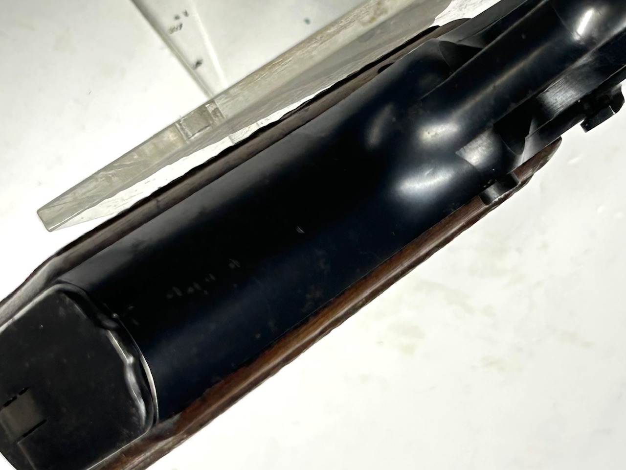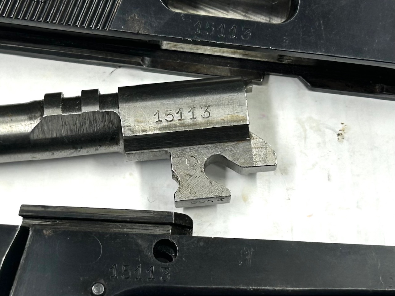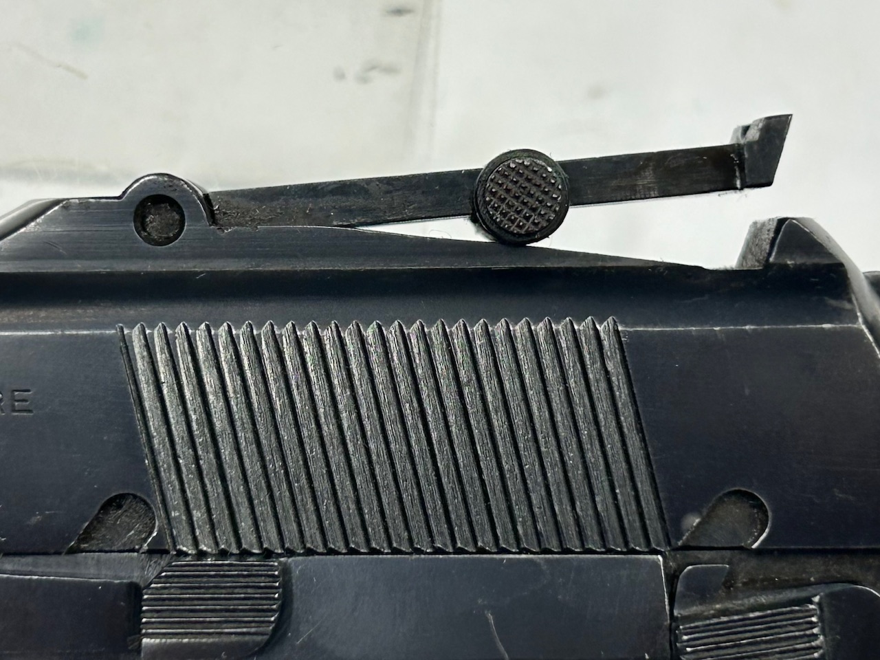 Rara HP35 (GP35) prima generazione, contratto militare per le forze armate del Belgio prima dell’occupazione tedesca, in condizioni splendide di brunitura originale, presenta oltre 95%, rigatura specchio, caricatore e guancette originali dell’epoca. matricola range 15mila riportata su fusto, carrello e parte non visibile della canna (corretto per le pre-40), oltre al banco di prova di Liegi sono presenti vari punzoni di accettazione degli ispettori militari belgi, tacca di mira con alzo a tangente del primo tipo graduato 50-500 su metà della lunghezza e alette di protezione sul carrello più sporgenti, profilo arrotondato sullo zoccolo della canna (poi sostituito da una lavorazione a spigolo).