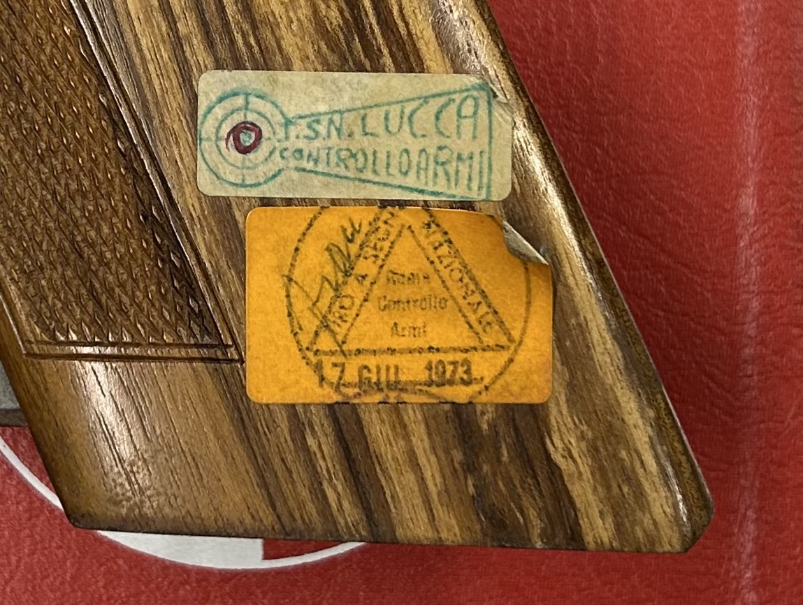 Originale HAMMERLI SWITZERLAND prima serie, matricola a due numeri, sull’impugnatura l’adesivo di registrazione ad un TSN datato “17 GIU 1973”, condizioni eccellenti, canna e meccanica perfette, completa di scatola originale e folder illustrativo.
