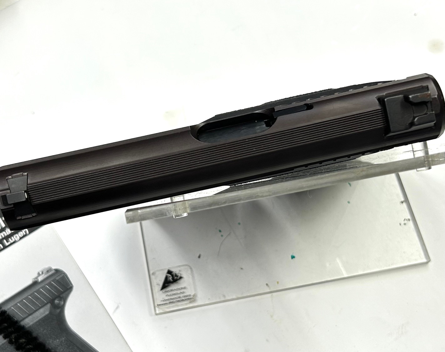 Anno 1994, rara versione bifilare per il mercato USA della celebre P7. Finitura originale in condizioni quasi perfette, canna specchio, meccanica perfetta, completa di secondo caricatore, chiavetta di smontaggio percussore, scovolo e raschietto presa gas, manuale P7M13 (in spagnolo, probabile contratto per sud America)