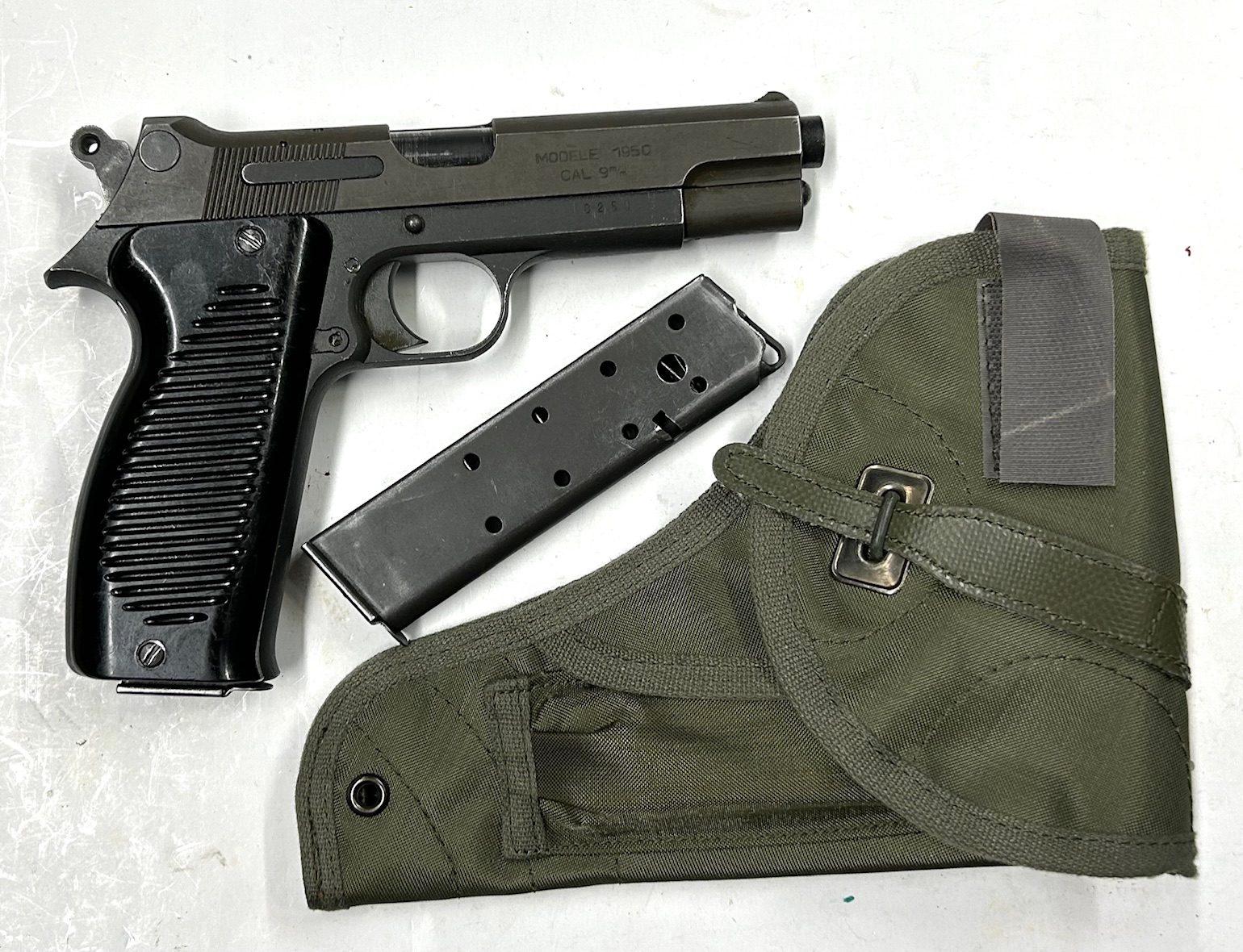 Ex ordinanza esercito francese in calibro originale, dismissione recente da arsenale governativo; finitura opaca originale condiz. eccellenti, meccanica perfetta, canna bella con rigatura oltre 80%, completa di fondina ultimo tipo, 2^ caricatore e manuale dell”ARMEE DE TERRE”; accompagnata dal certificato del banco di prova di St. Etienne che ha testato l’arma per l’immissione nel mercato civile.