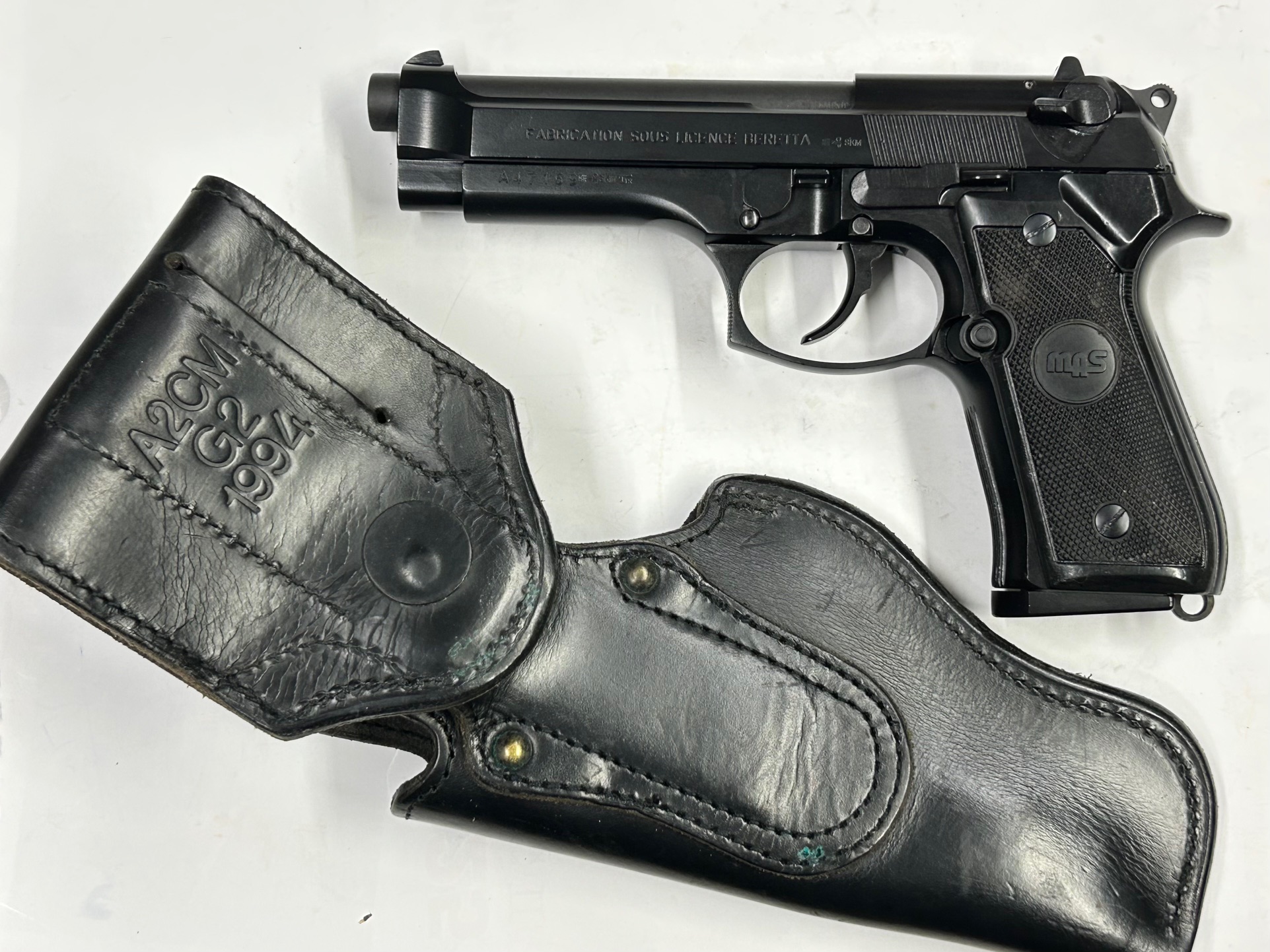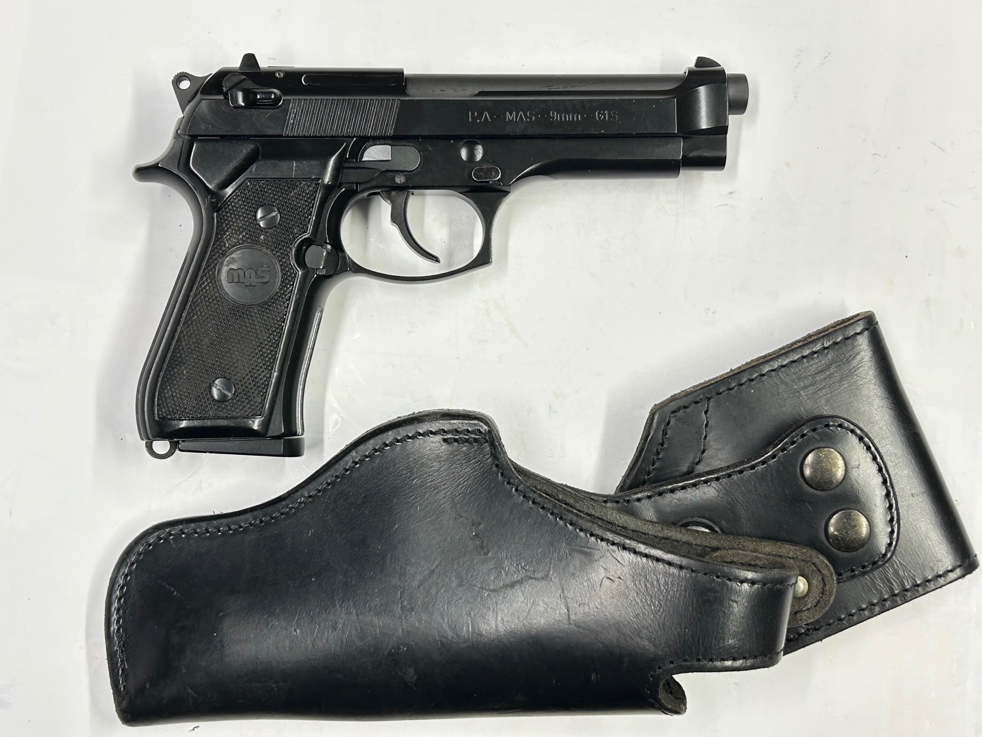 le guancette come le originali con il logo MAS al centro, i caricatori sono marcati ” MAS CAL. 9 PARA – FABRIQUE SOUS LICENCE BERETTA”.