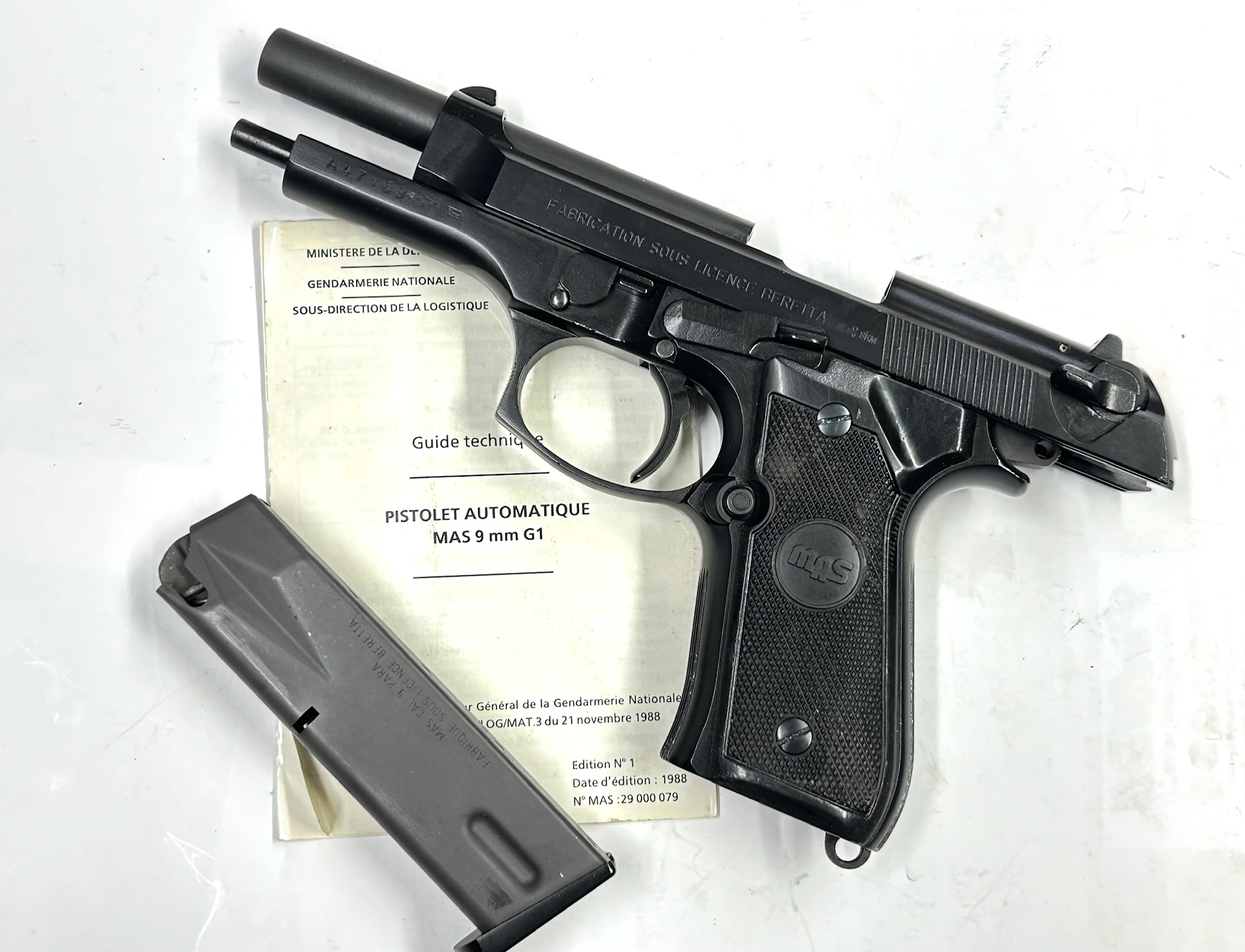 La storia della MAS G1 inizia nel 1989 quando la Beretta vince la gara indetta dalla Gendarmerie Nationale per la sostituzione della MAC 1950, seguirà nel 1992, l’Armée de l’Air e nel 1999 anche Armée de Terre Marine Nationale adotteranno la 92 prodotta su licenza; la produzione totale è stata di circa 100.000 unità con trent’anni di servizio prima della sostituzione graduale dal 2019 con la Glock 17.