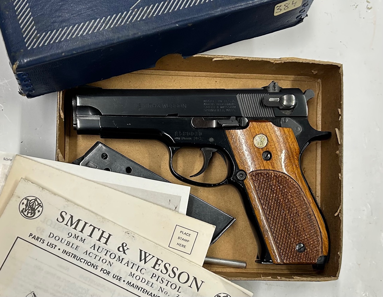 La prima semiauto doppia azione in calibro 9 di S&W, derivata dal modello progettato per partecipare alla gara indetta dal U.S. ARMY nel 1954, fu introdotta nel mercato civile dall’anno successivo con la denominazione “Model 39 9mm Double Action Automatic Pistol“.