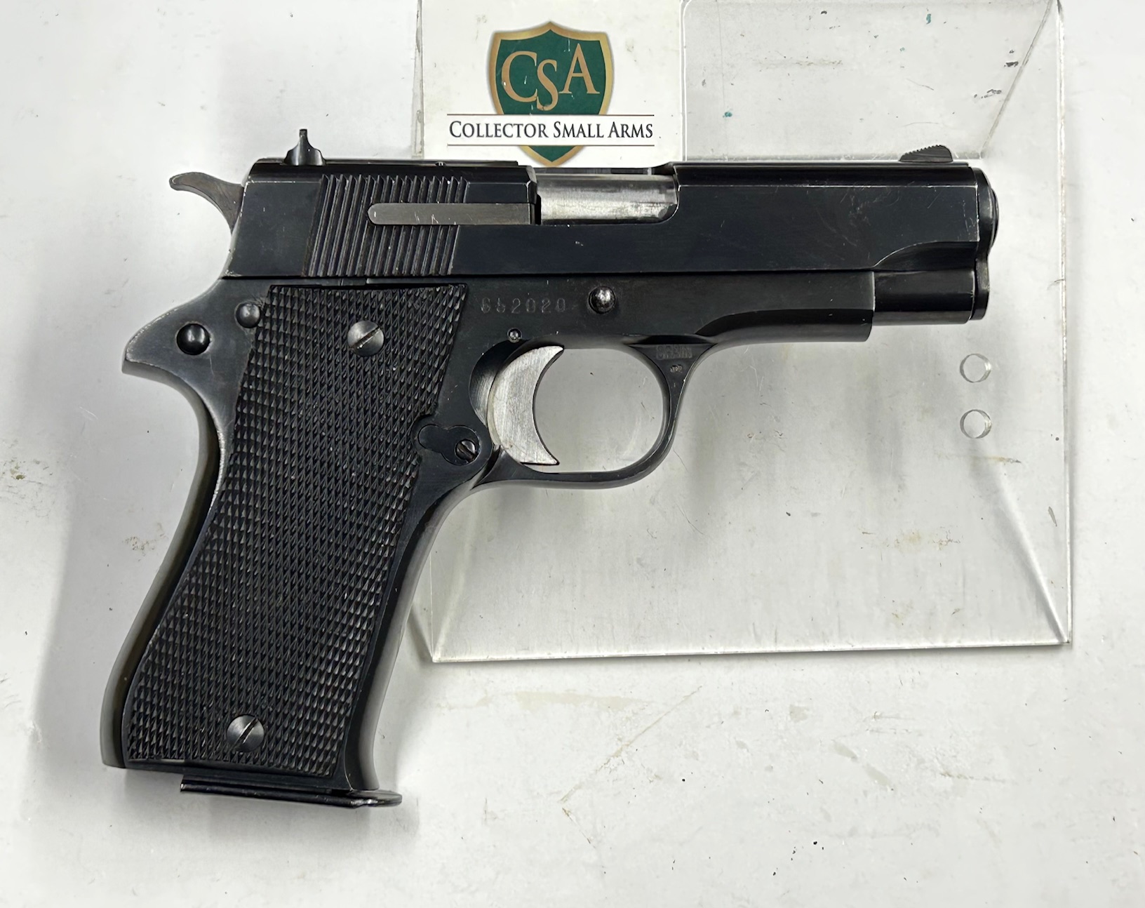 Versione compatta della Model B, prodotta negli anni ’70 e ’80, adottata dalle forze di polizia e militari spagnole per il porto occulto, i modelli commerciali marcati SPAIN come in questo caso erano destinati al mercato USA dove ottenne un buon successo per la famigliarità con la 1911, il basso costo e la buona qualità;   interamente in acciaio, singola azione, caricatore 8 colpi, guancette legno. Banco di prova 1982, condizioni eccellenti, finitura originale, canna e mecccanica perfette