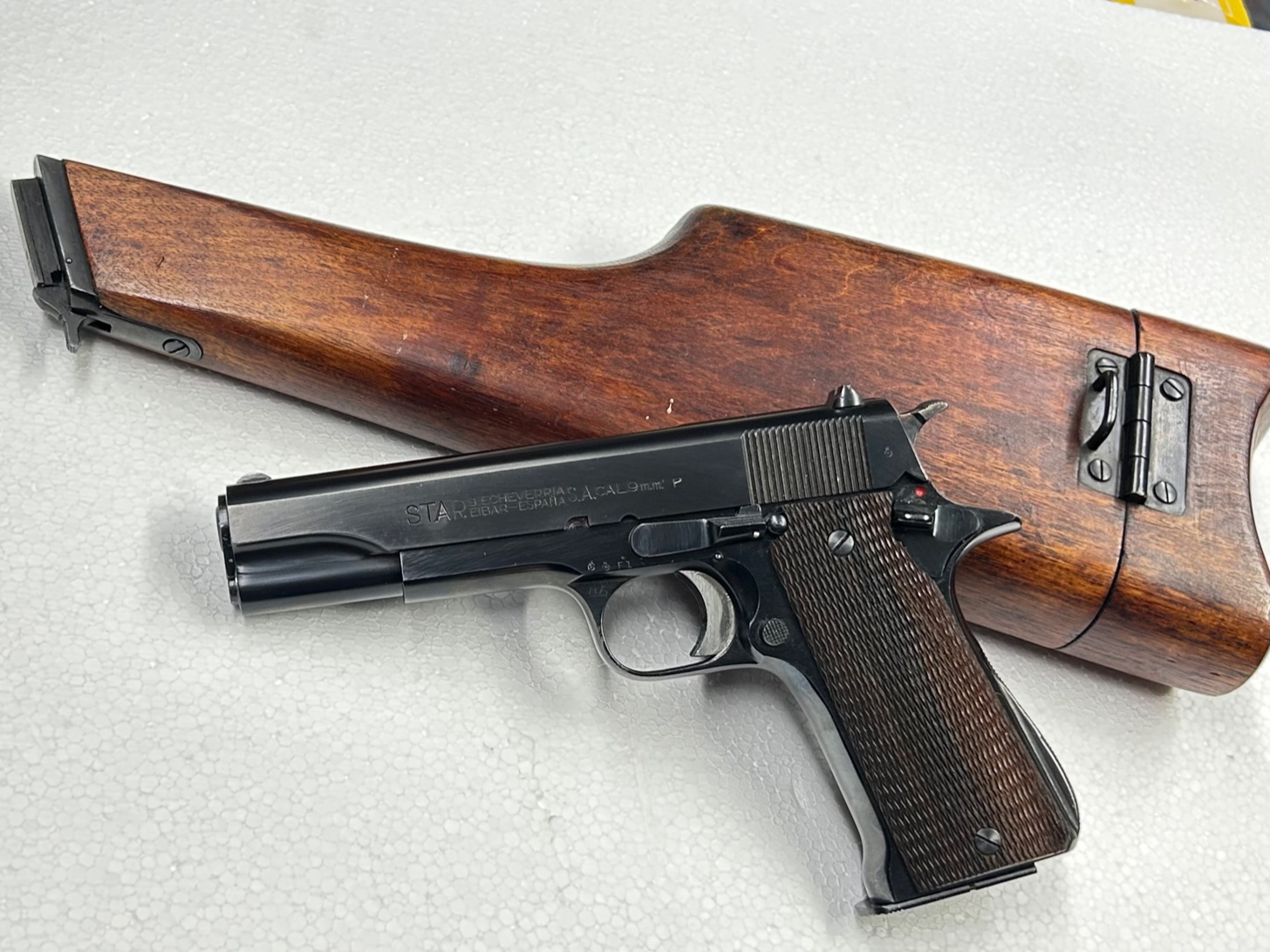 Il modello “M” è la non comune serie di pistole STAR derivate dal mod. “B” con l’aggiunta della predisposizione per il calciolo-fondina in legno e prodotte anche con tiro selettivo (mod. M D); in particolare di questa versione civile “M B” in calibro 9 Para ne sono stati prodotti solo 1.757 pezzi dal 1956 al 1975.