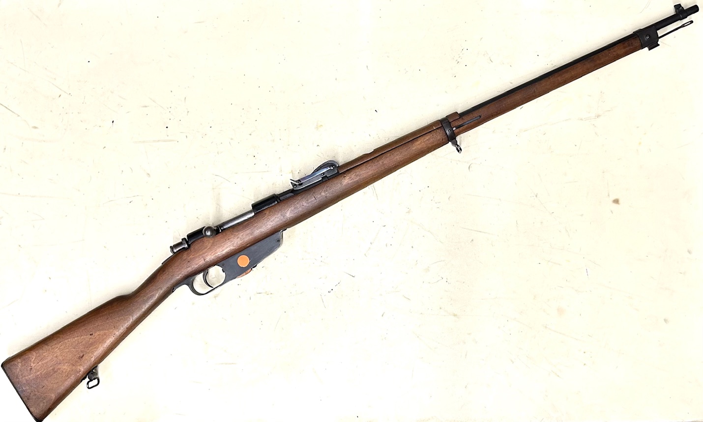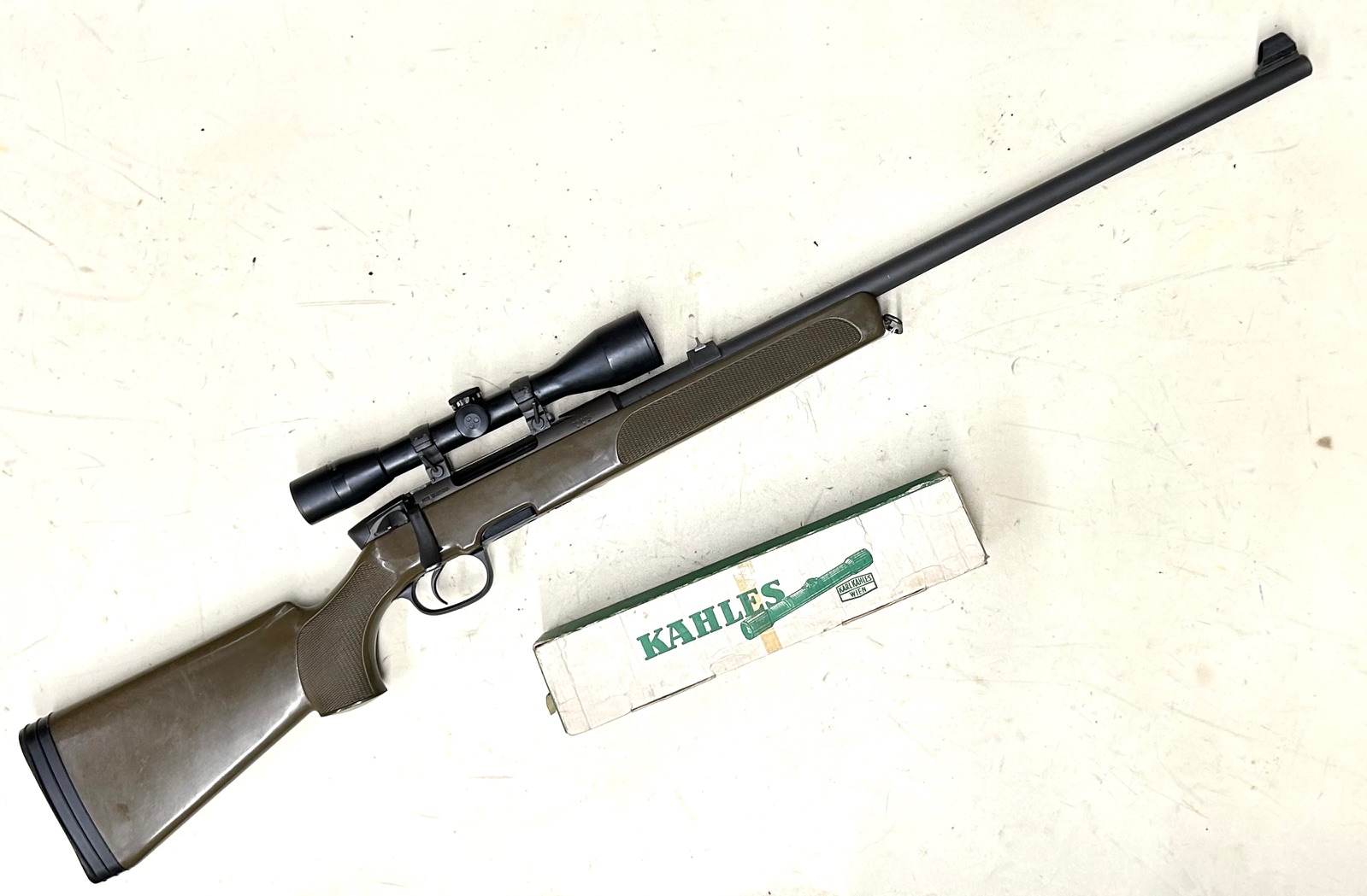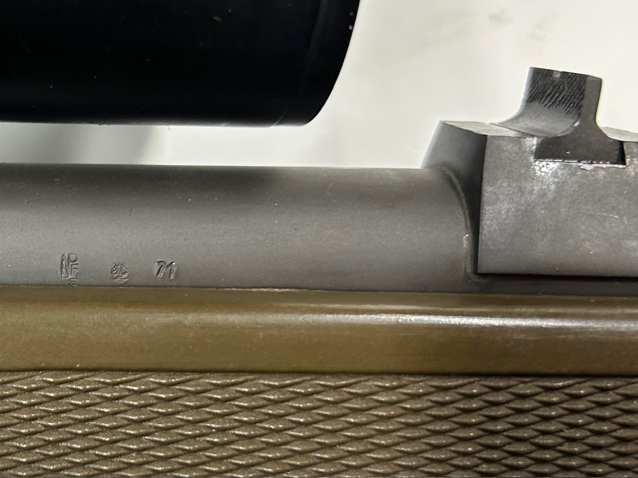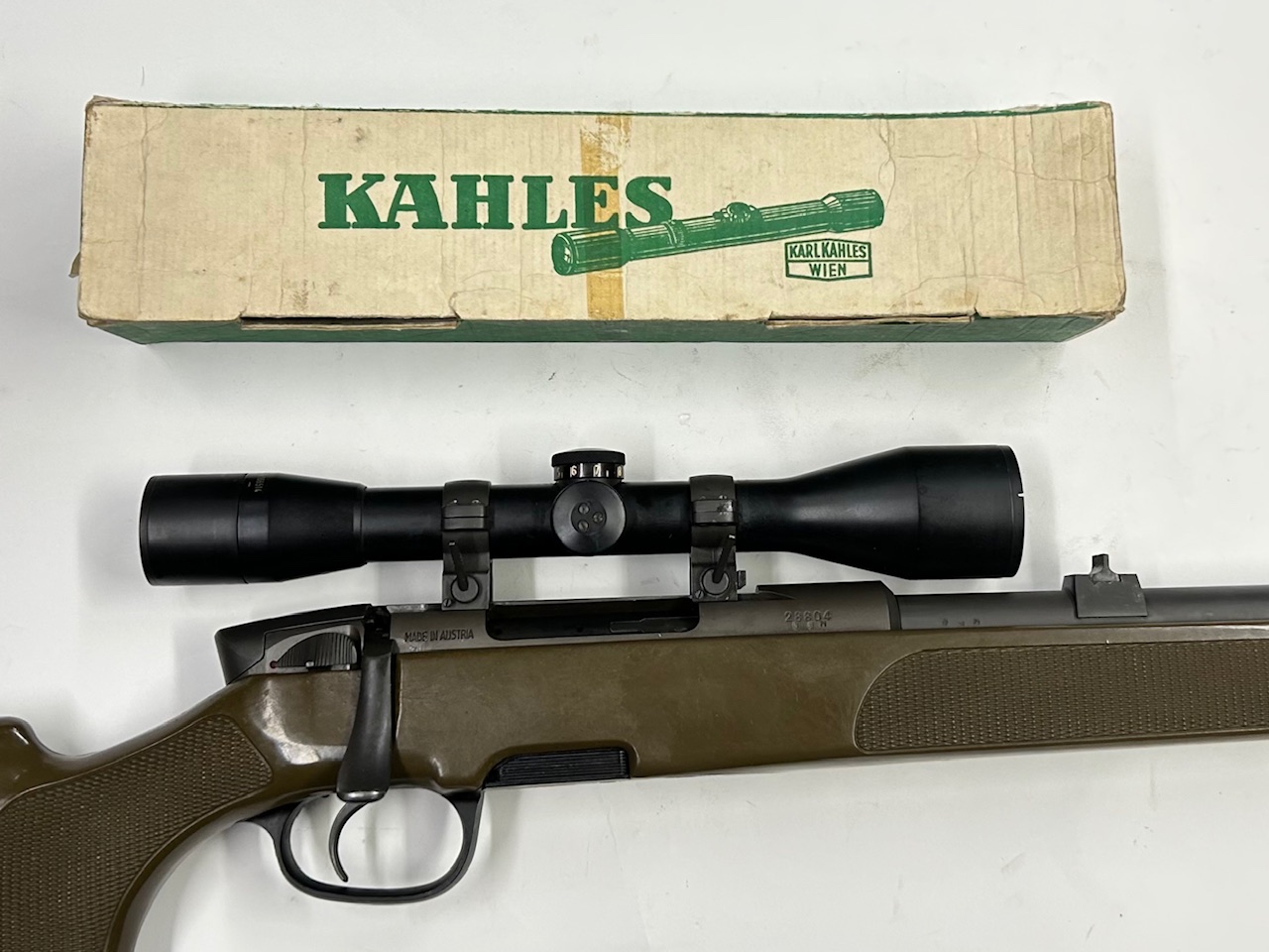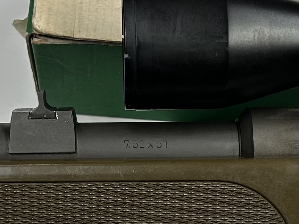 Sniper militare austriaco prima serie, terzo anno di produzione (banco di prova Vienna 1971), matricola 28xxx, sulla canna e sul caricatore l’indicazione del calibro militare “7,62×51” (i modelli destinati al mercato civile riportavano 308 Win), calciatura verde con astina senza fresatura, completo dell’ottica originale d’ordinanza marcata “ZF 69 – 6×42 KAHLES WIEN” con attacchi a sgancio rapido e la sua scatola d’epoca; la scritta rullata sulla culatta riporta “STEYR-DAIMLER-PUCH A.G. STEYR MANNLICHER MOD. SSG 69“, tacca di mira primo tipo, mirino a goccia con tunnel.