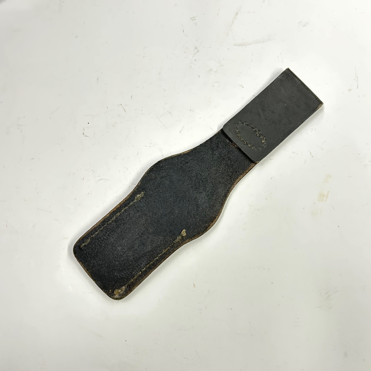 Porta baionetta (dragona) in cuoio grigio-verde, con marchio dell’arsenale “TORINO”,  materiale militare originale Regio Esercito, condizioni eccellenti da surplus d’arsenale