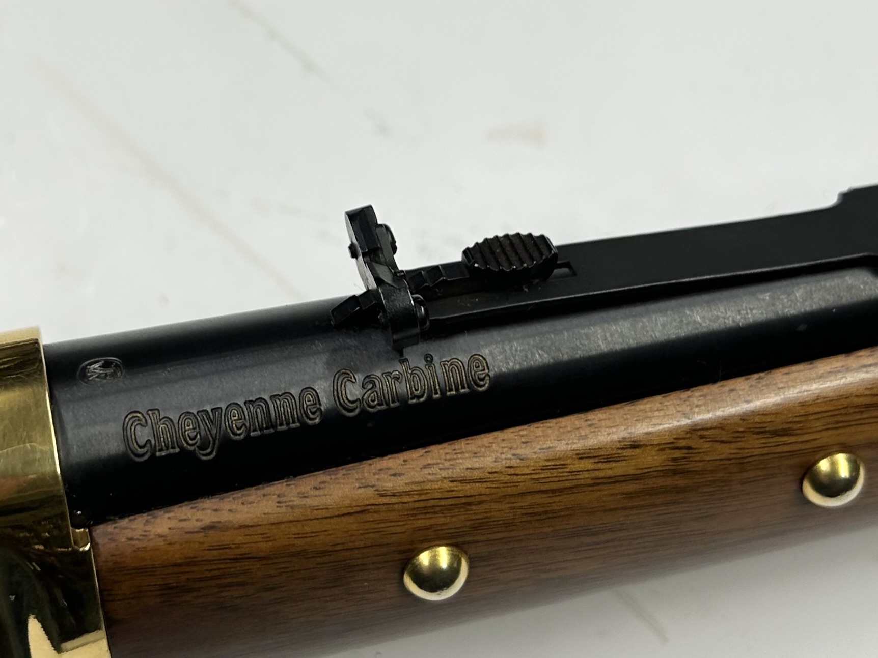 Le incisioni sul telaio dorato lucido, il medaglione nel calcio e la scritta sulla canna celebrano i “Cheyenne delle Grandi PIanure”. Questa versione ha inoltre uno speciale mirino ribaltabile a diottra sulla parte superiore del calcio.